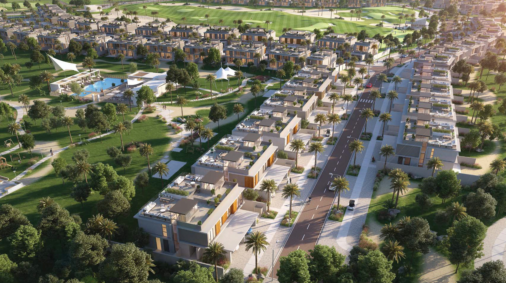 - تتميز الوحدات السكنية في مجمع كلوب فيلاز بإطلالتها السكنية المتميزة الواقعة على ملعب الجولف.