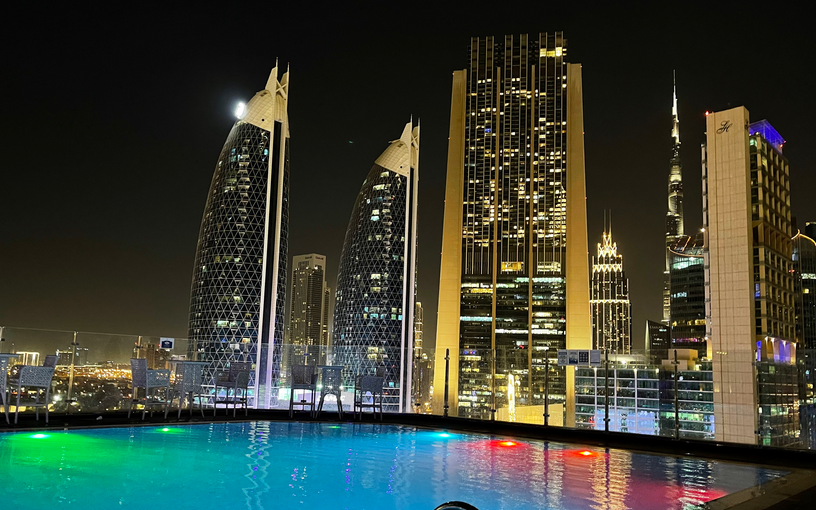 في الأيام الصيفية المشمسة لا بد من تواجد برك السباحة لمزيد من الانتعاش، وهي واحدة من أفضل المرافق الترفيهية التي احتوى عليها الفندق، وتزيد منظر الإطلالة الخلابة روعة وجمالًا خاصة وانه يمكن النظر إلى أفق داون تاون دبي وخوض تلك التجربة الفريدة من نوعها، وتوجد بركة سباحة للأطفال أكثر أمانًا، إضافةً إلى المكان المخصص لتبديل الملابس والاستحمام، ويتوجب العلم أن مواعيدها المتاحة تبدأ من الساعة الثامنة صباحًا إلى العاشرة مساءً كل يوم.