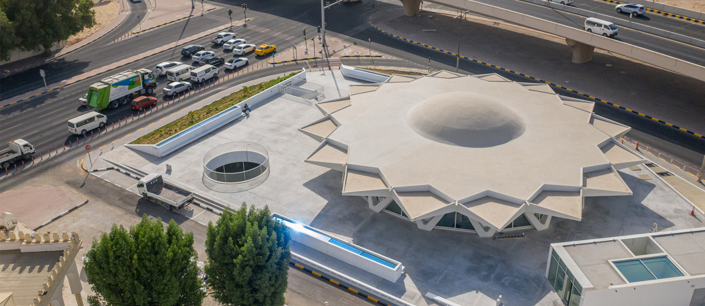 قد قام بها خمسة عشر من الفنانين الإماراتيين، مع مختلف عناصر الحركات الفنية المميزة، وقد تم إطلاق وصف على المعرض يتضمن الكثير من القصص والذكريات، والتي تكوّن حركة وصل بين عدة أجيال، ويرجع السبب في اختيار معلم الطبق الطائر إلى موقعه الجوهري.