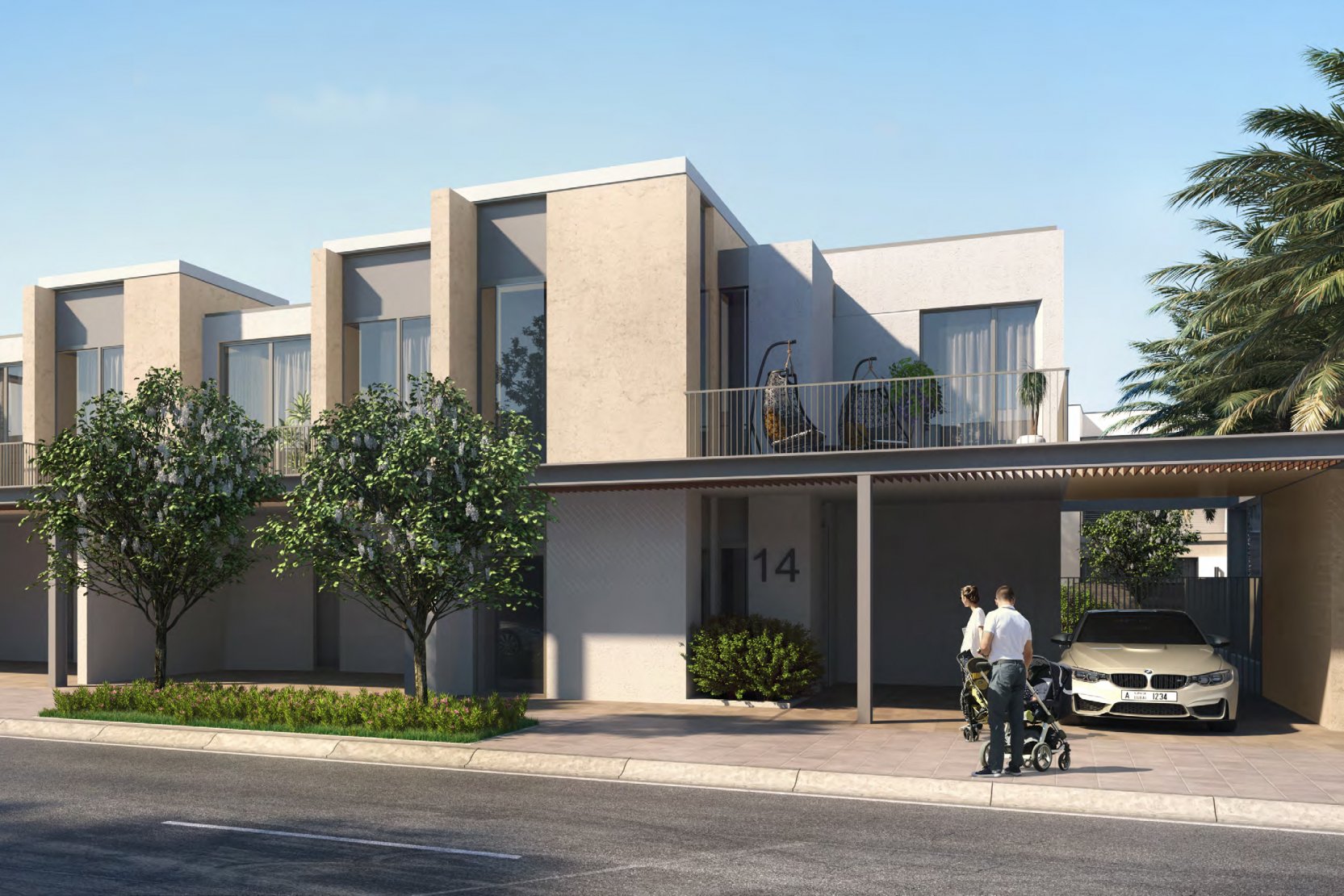 - الفلل من 4 غرف: تضم الفلل من 4 غرف 3 غرف نوم رئيسية في الطابق الأول منها غرفة بحمام ملحق وغرفتين بحمام مشترك، ويضم الطابق الأرضي غرفة للضيوف بحمام ملحقة وغرفة للخادمة بحمام خاص ومطبخ صغير ملحق بمساحة لتناول الطعام ومساحة للمعيشة، كما يضم موقف خاص للسيارات وحديقة خاصة.