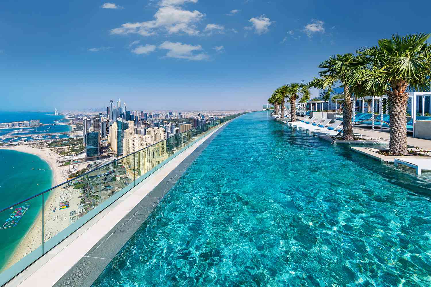 عرفت دولة الإمارات العربية المتحدة بارتفاع درجات الحرارة بها والمناخ الحار خلال فصل الصيف، بالتالي كثرت مرافق الترفيه المائية في مختلف نواحيها، والتي جذبت إليها الزوار من داخل الدولة أو خارجها، ومن بينها أشهر مسابح أسطح الفنادق في دبي التي تصنف ضمن أنواع المسابح بشكل عام، فمنها ما يكون مغلقًا أو مفتوحًا بالهواء الطلق، ولتخوض تجربةٍ فاخرة في أحد فنادق دبي جرب الحجز بمسبح في أعلى الفندق لتجرب أعلى معايير الرفاهية، وفيما يلي نعرض أشهر المسابح من هذا النوع: