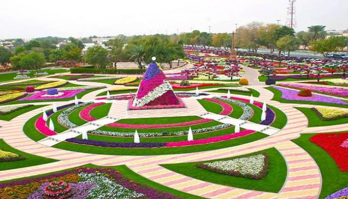 • وتزين بأكثر من 147 ألف شجرة نخيل وأنواع أخرى من الأشجار والنباتات، كالبرتقال والموز والمانجو.